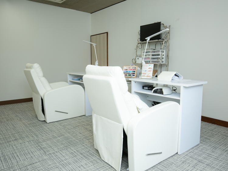 清潔感のあるホワイトインテリアが特徴のネイルルームです。
